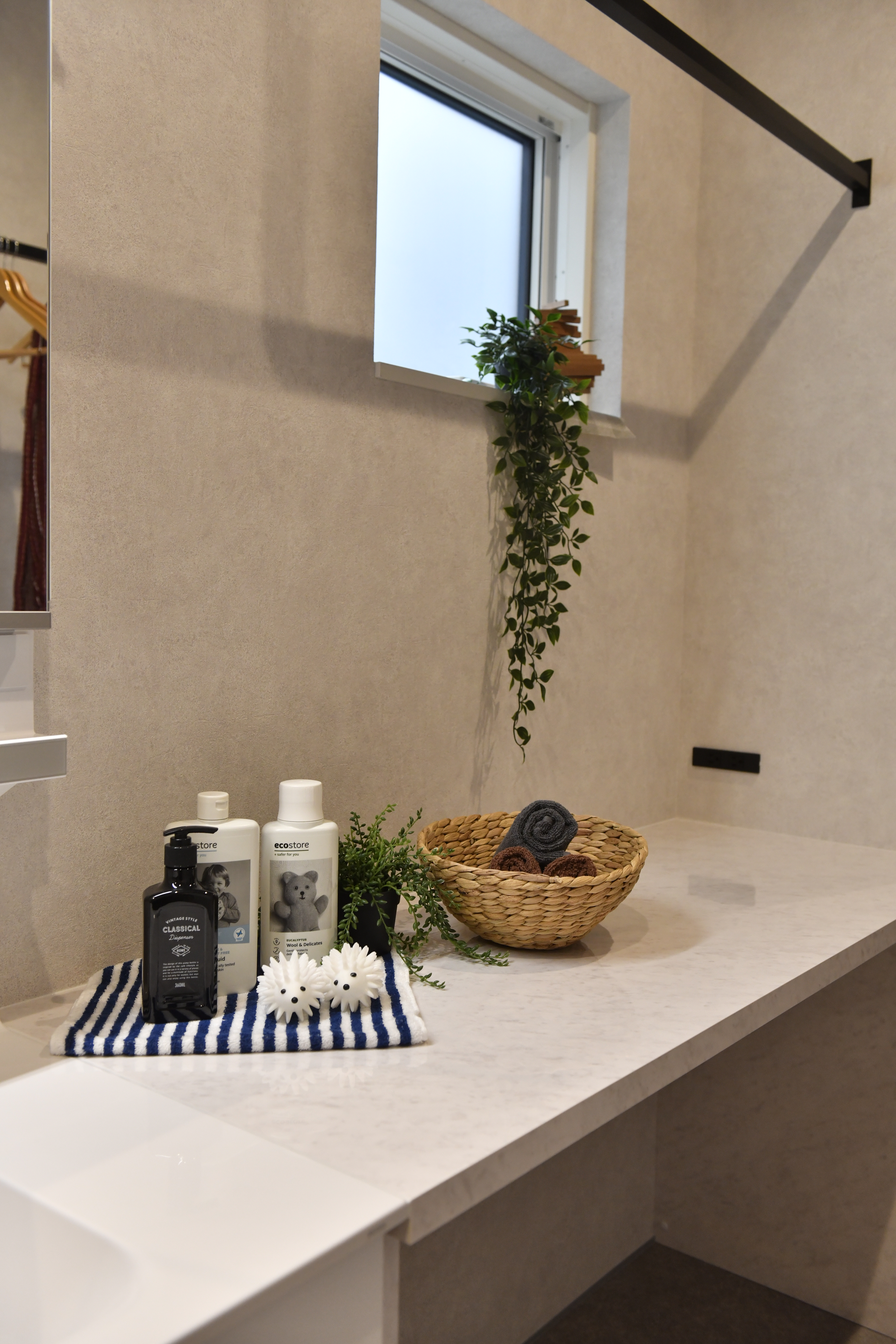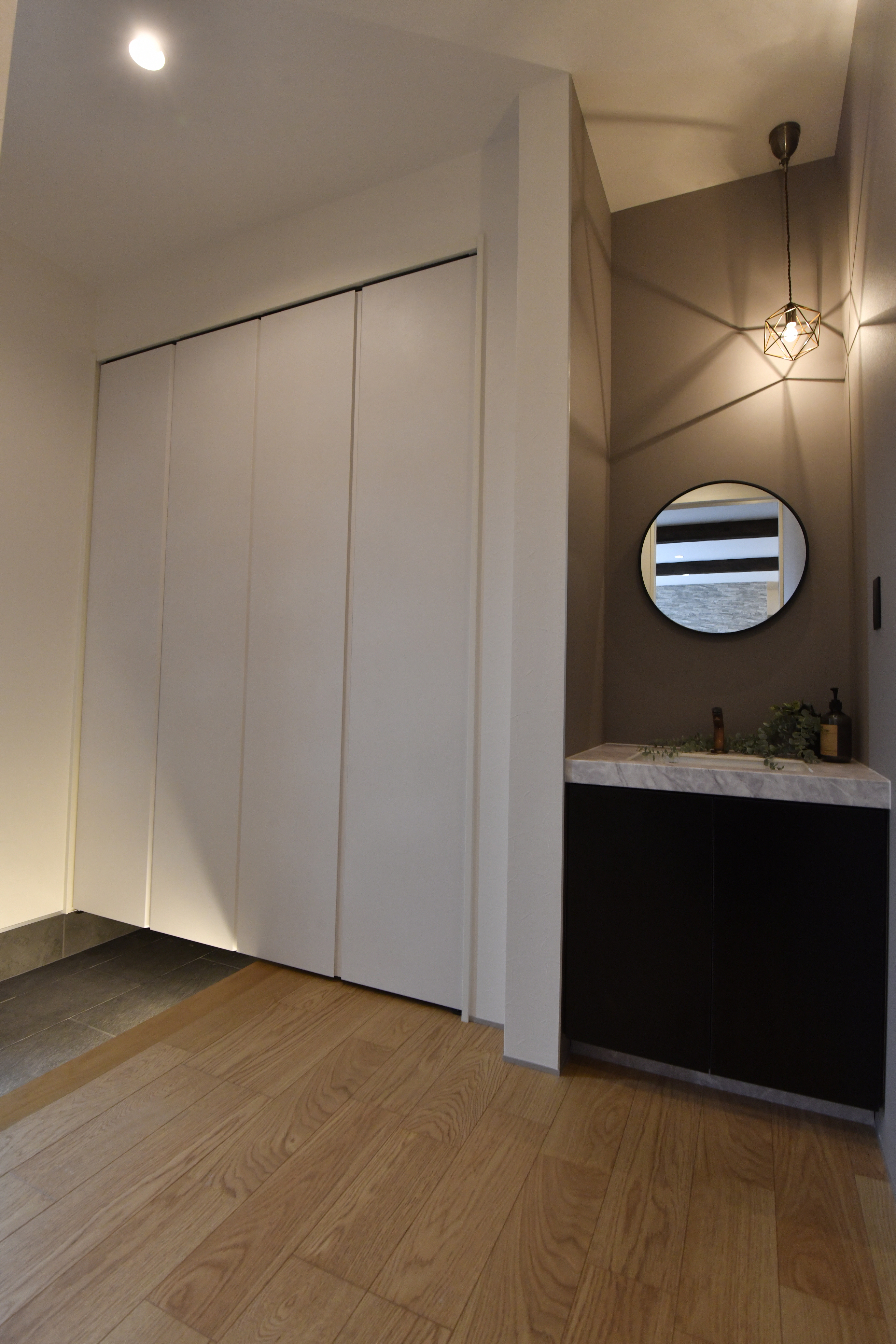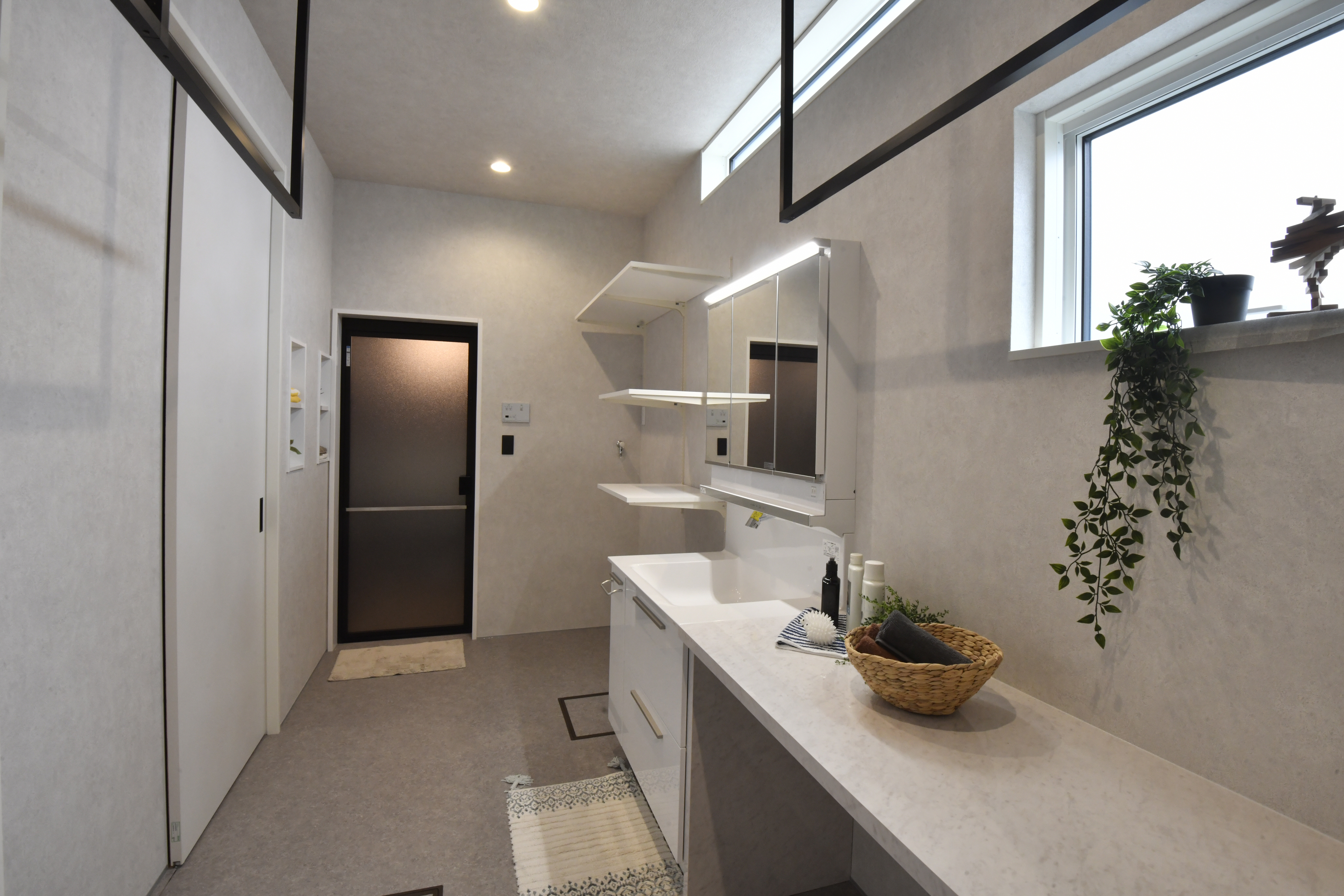 ・大容量の玄関収納・洗面収納を設け、生活感を抑えてスッキリとした空間に