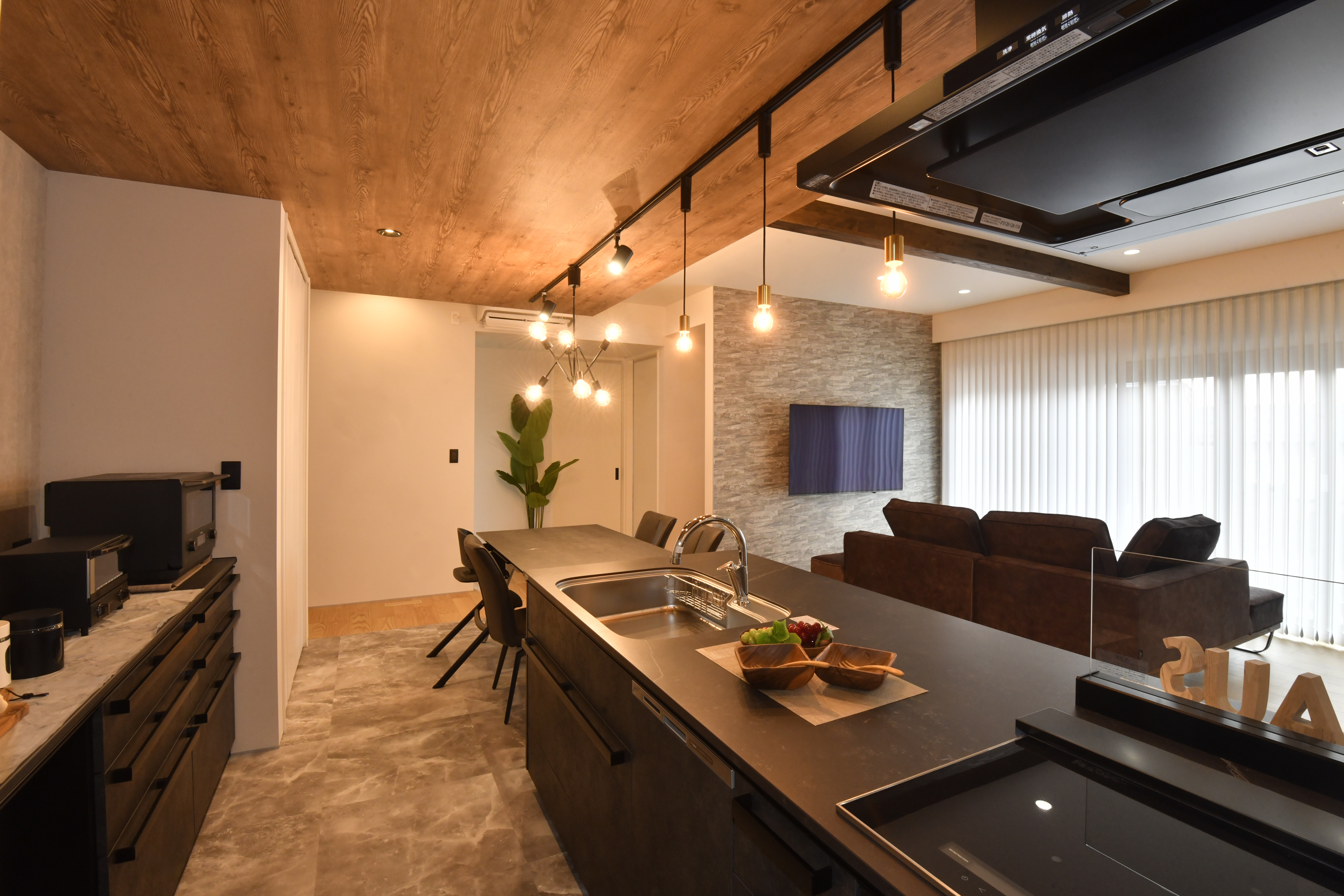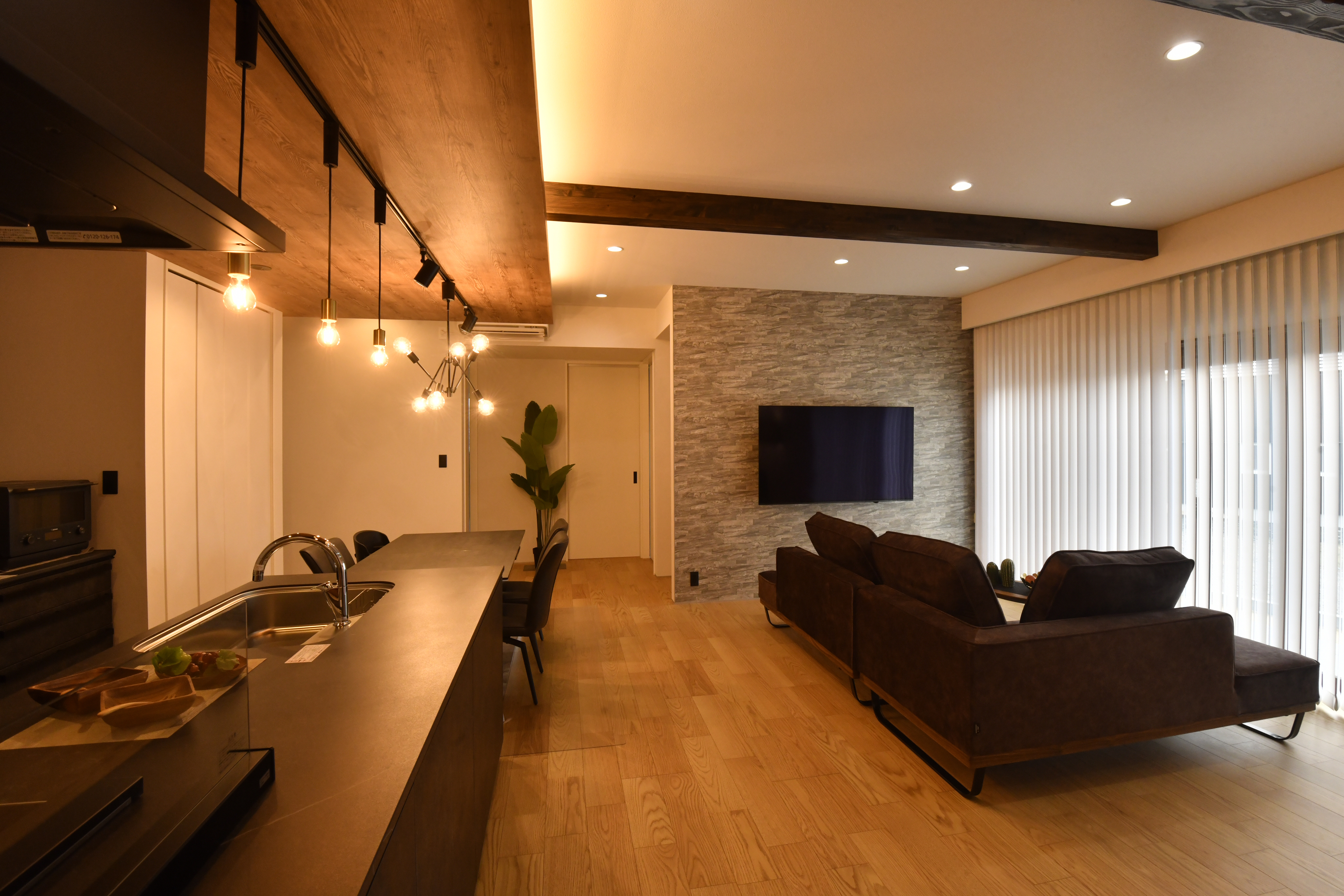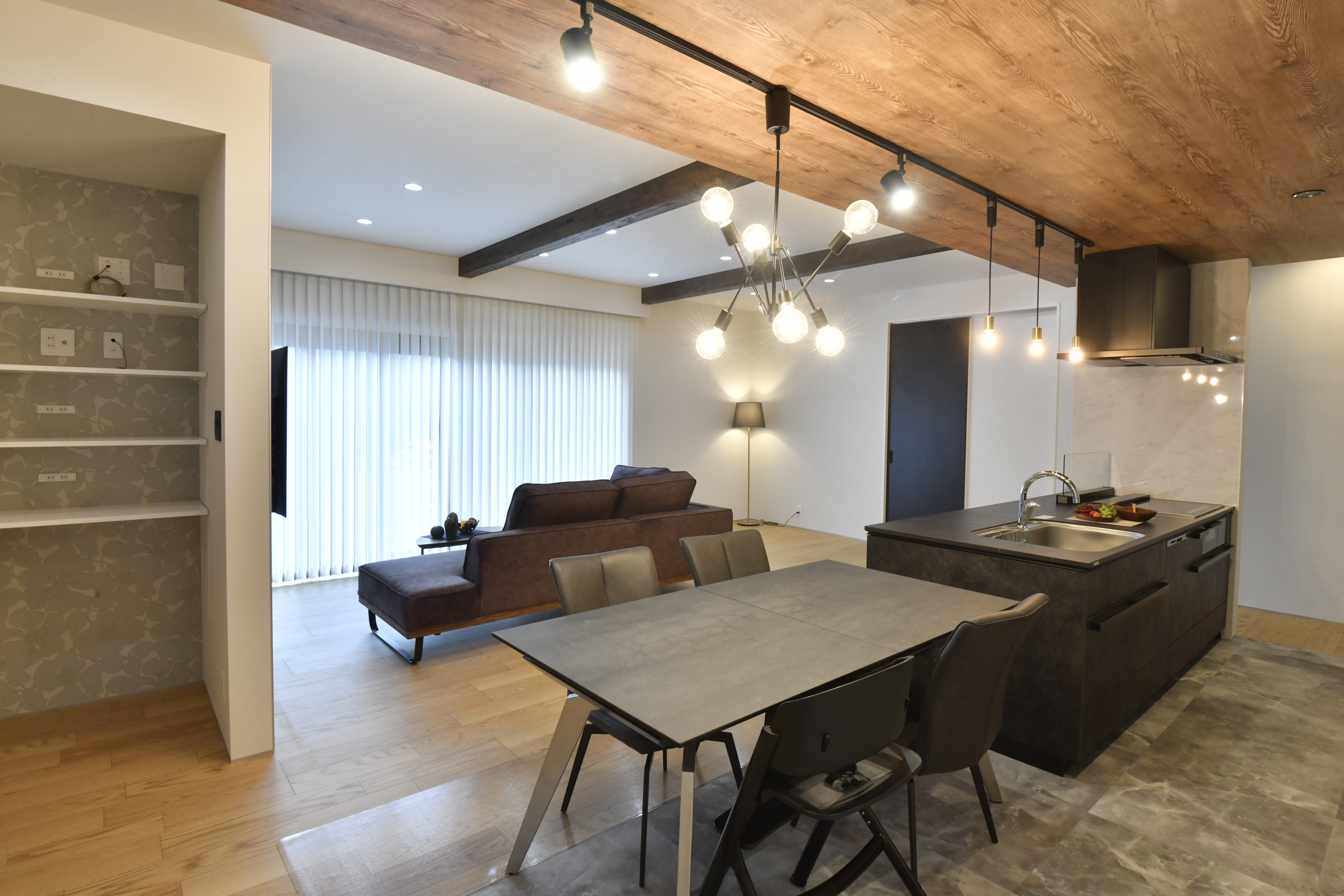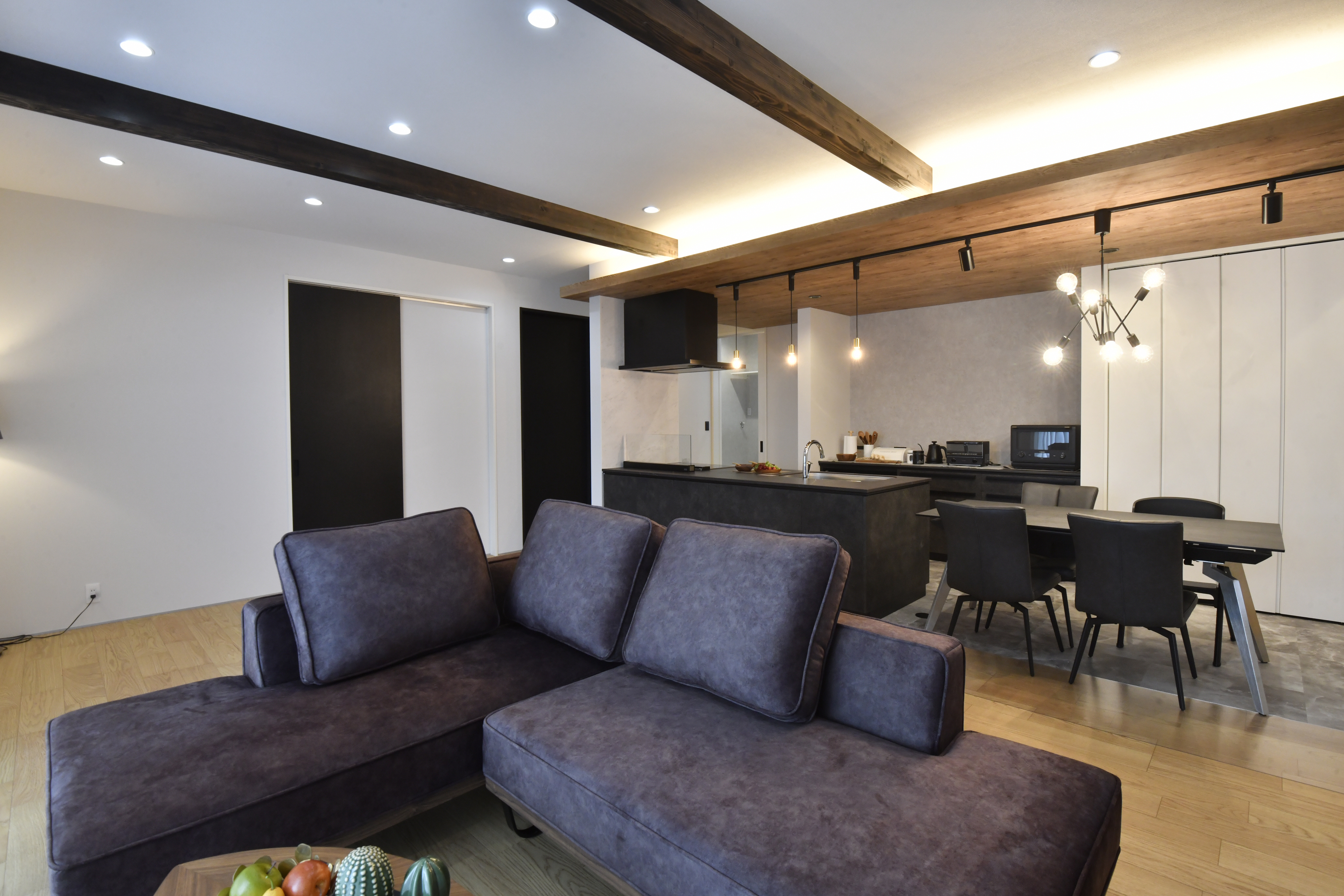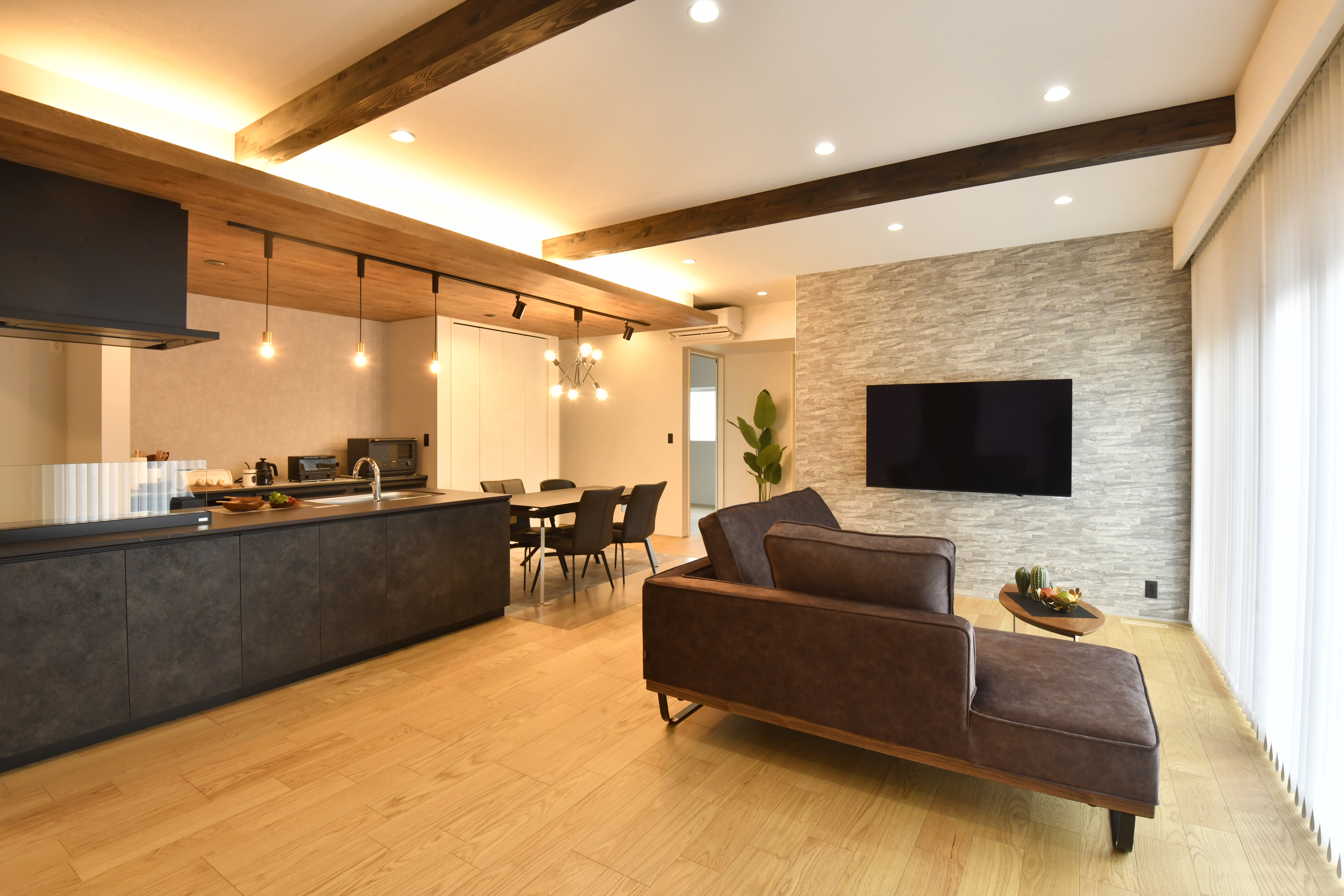 ・梁見せ&下がり天井を採用し、開放的でスタイリッシュなLDKを実現