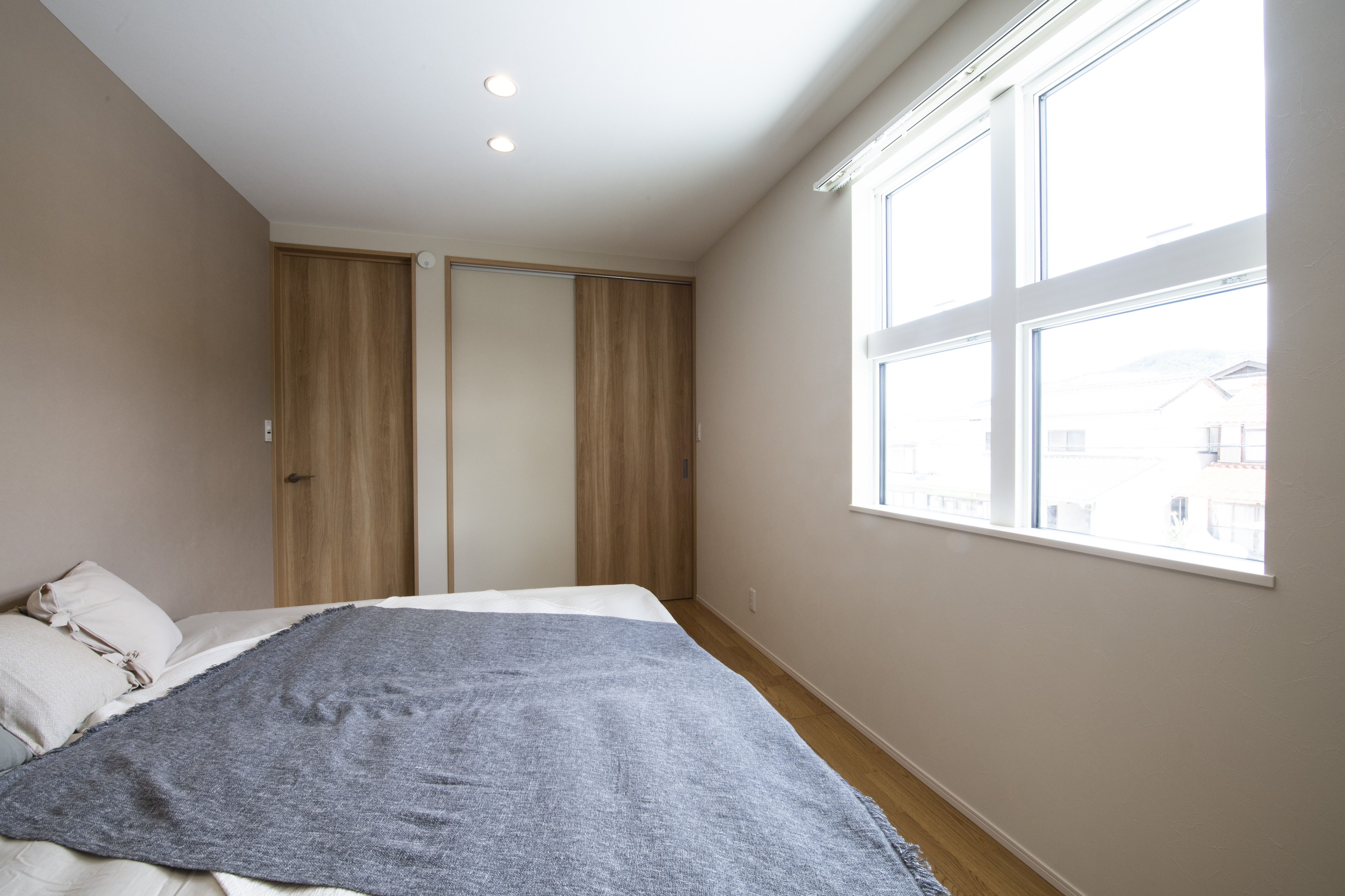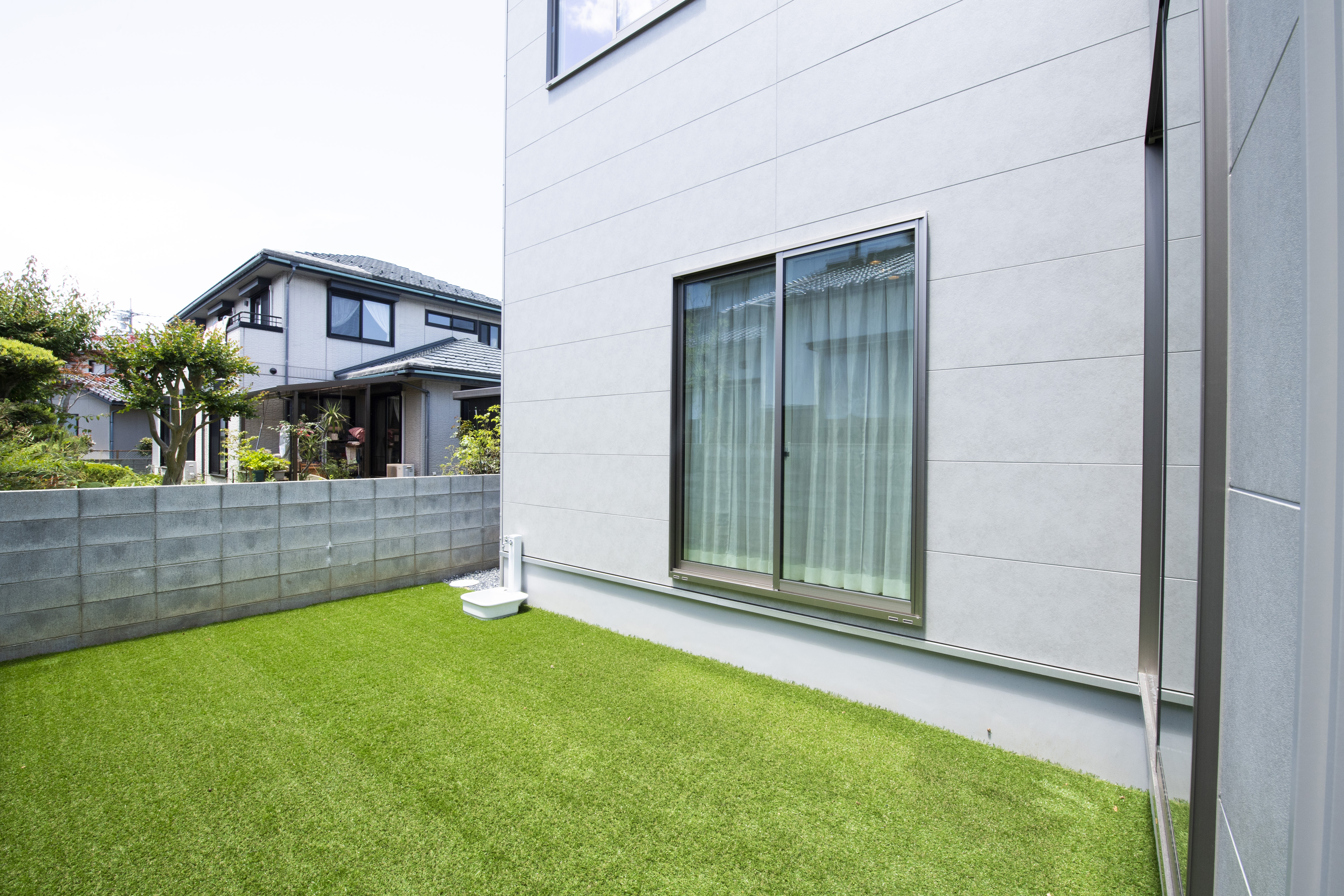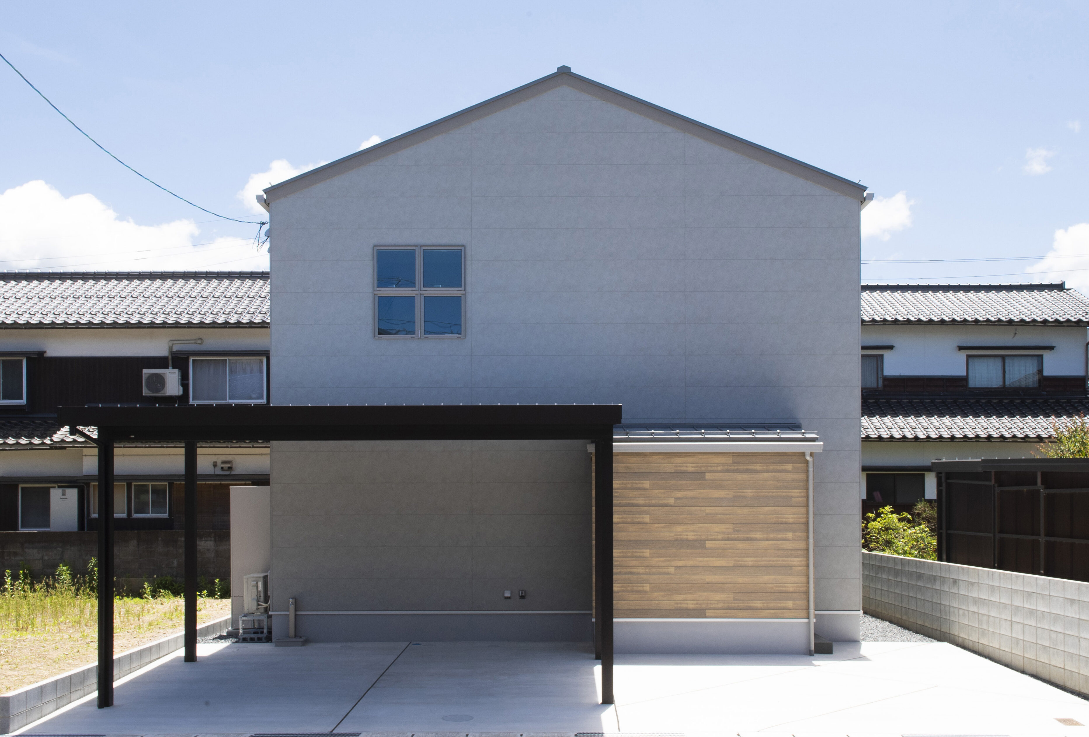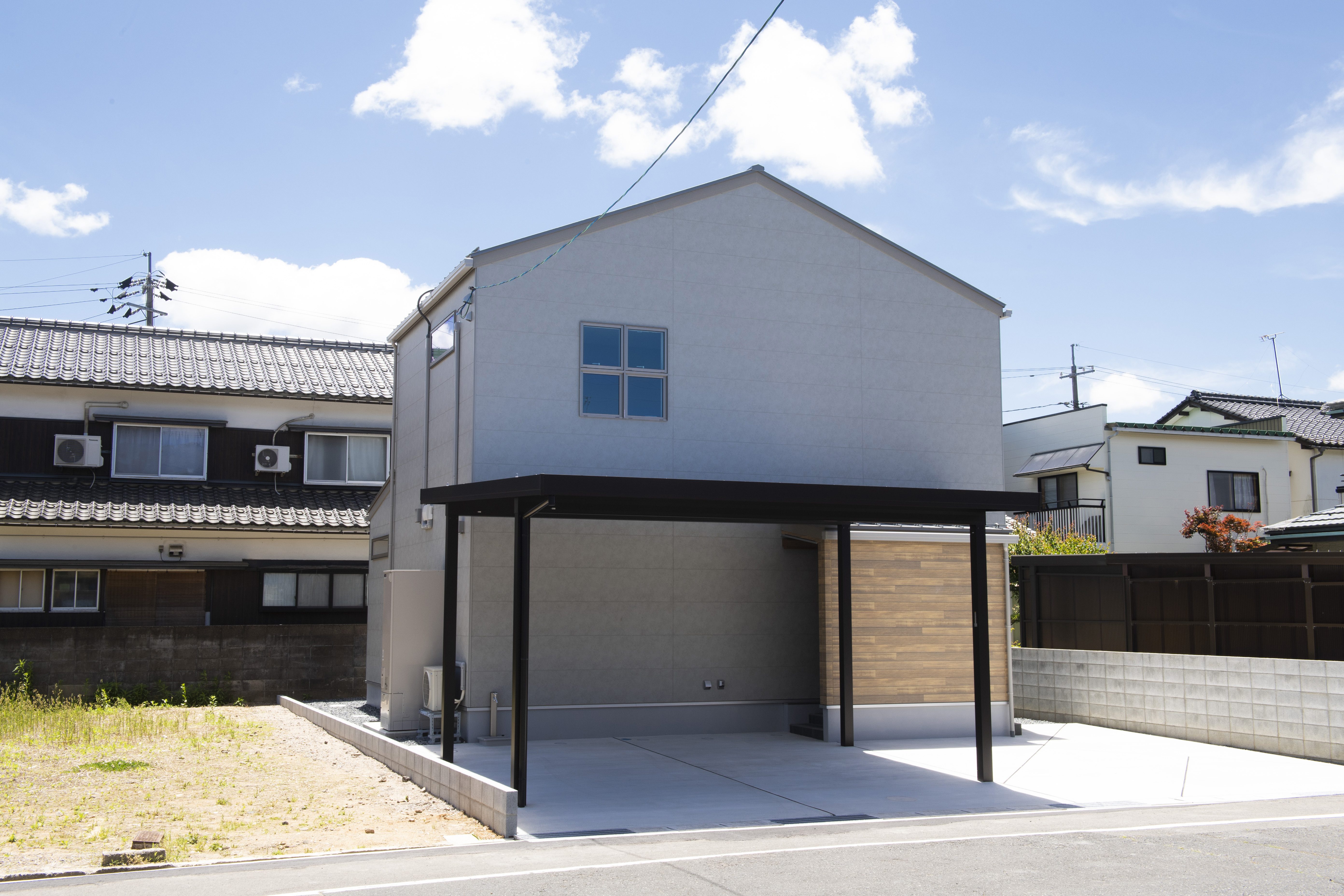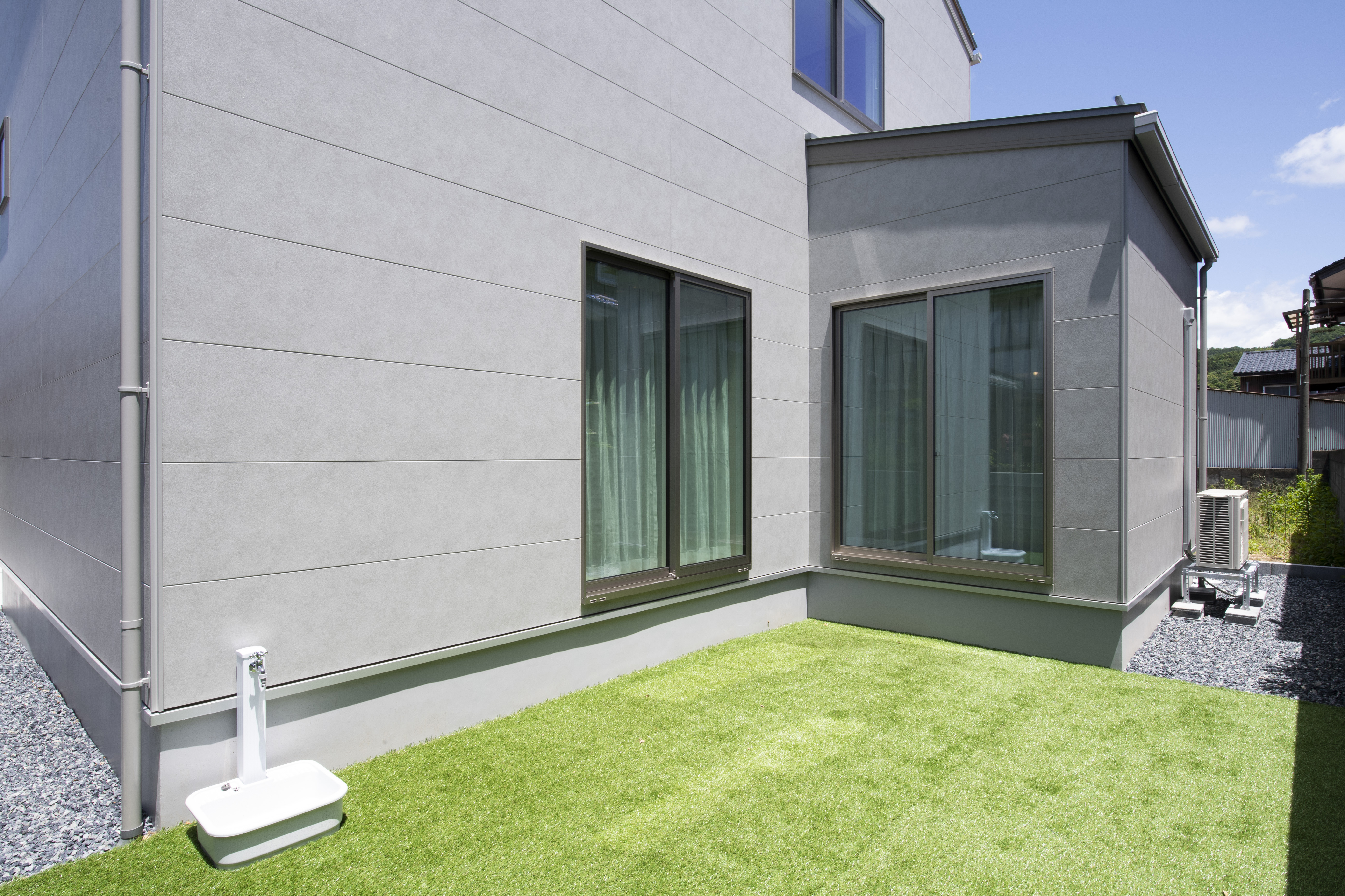 グレーを基調としたやさしい印象の外観、窓を最小限に抑えつつ程よいアクセントに。