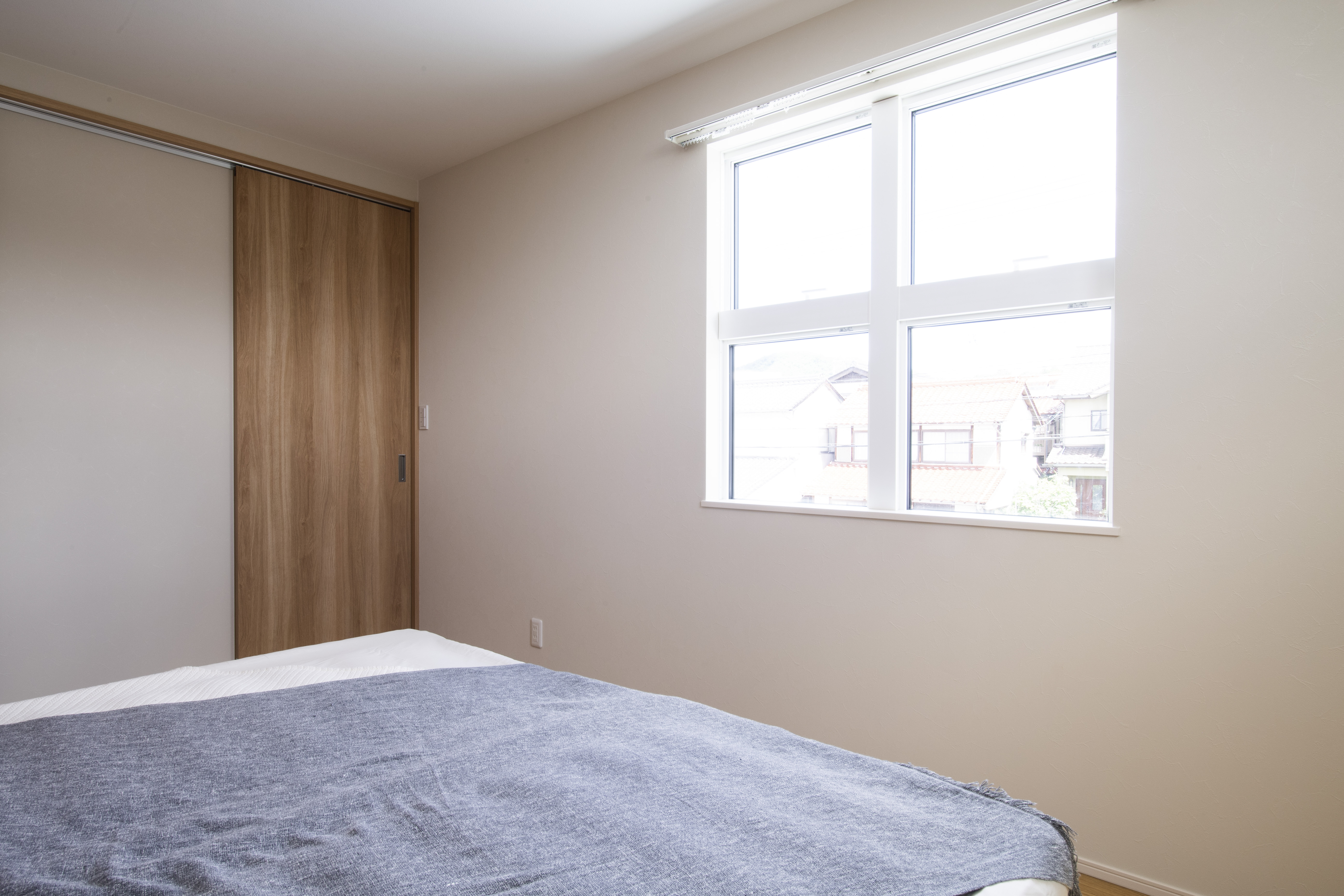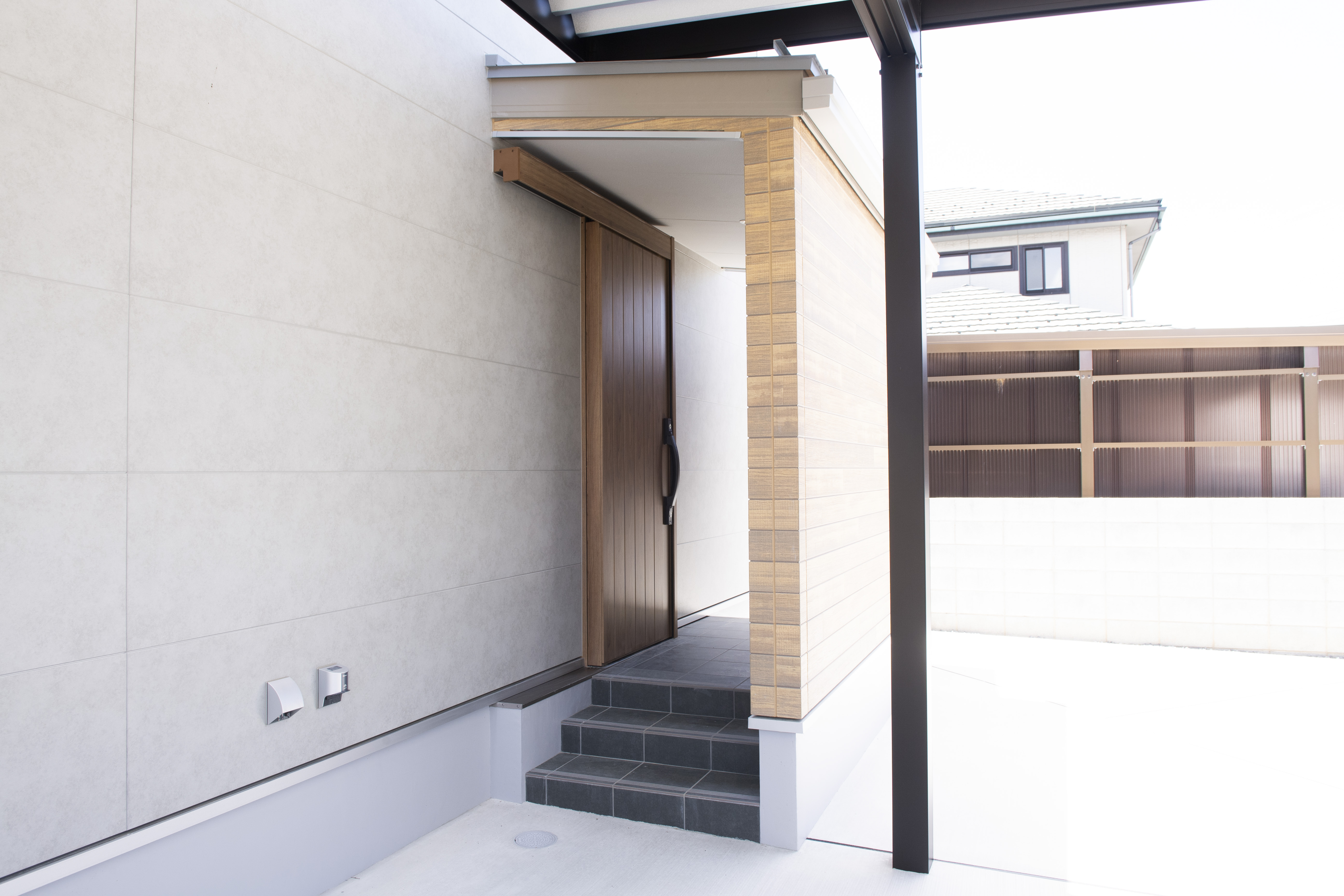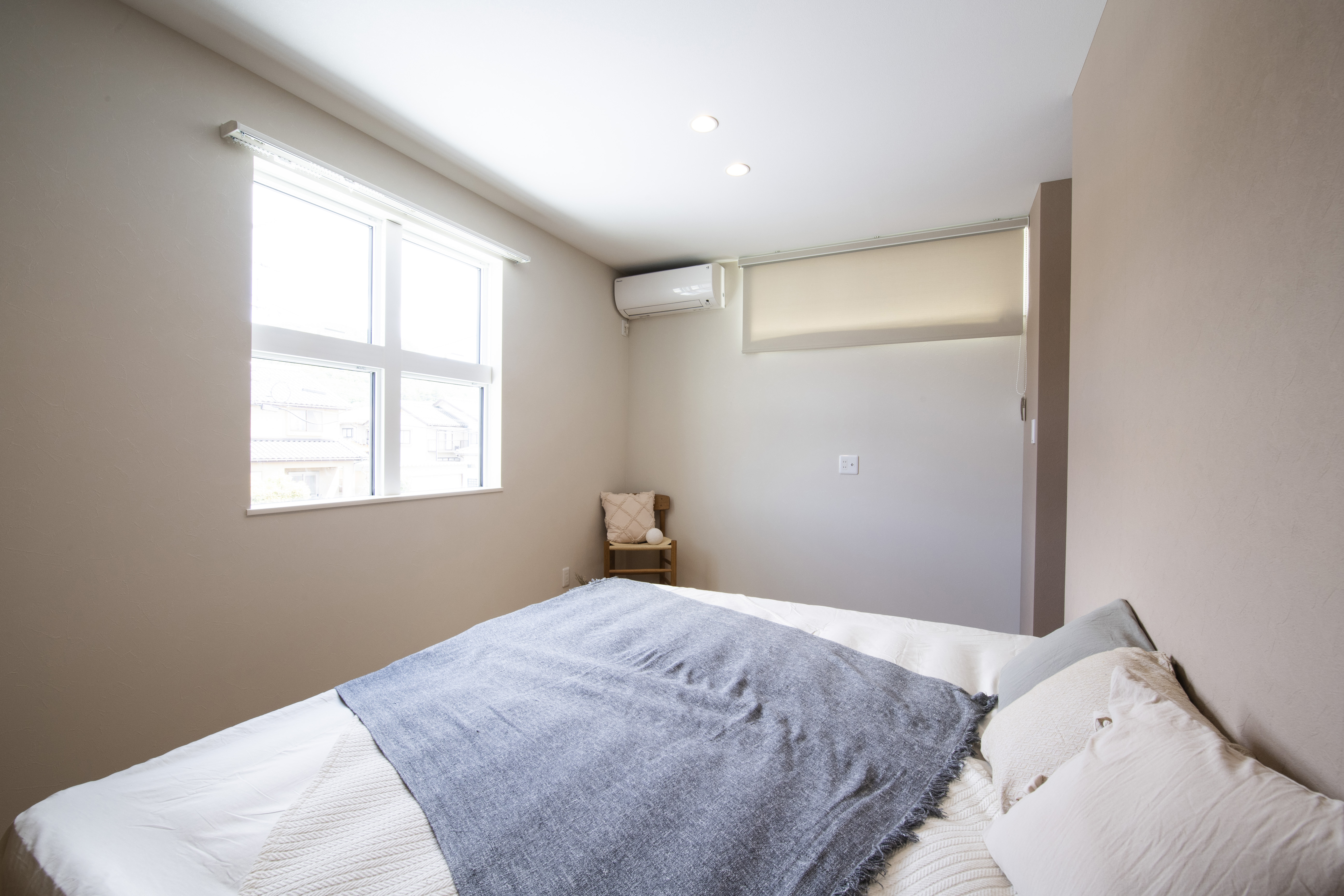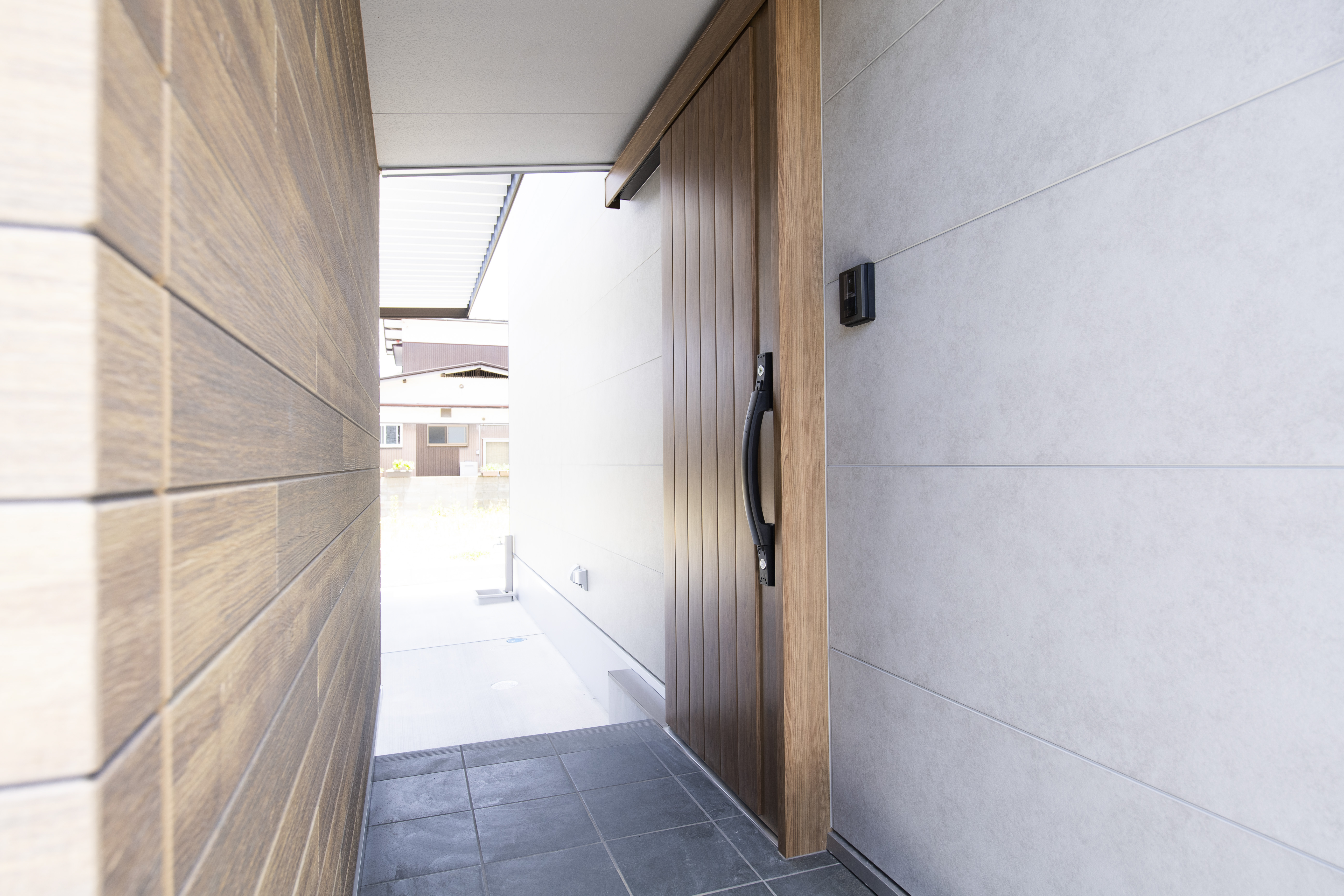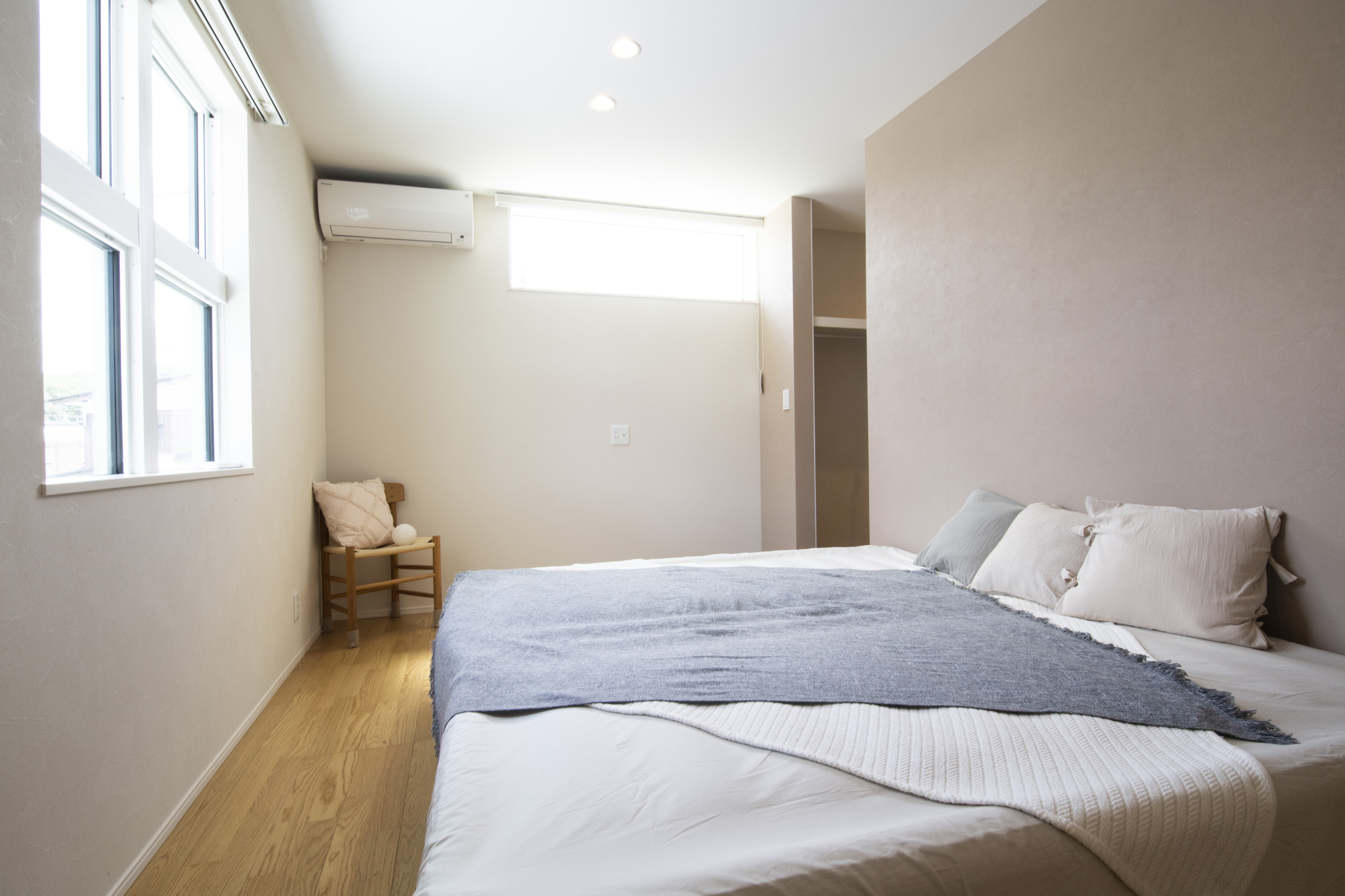 グレーを基調としたやさしい印象の外観、窓を最小限に抑えつつ程よいアクセントに。