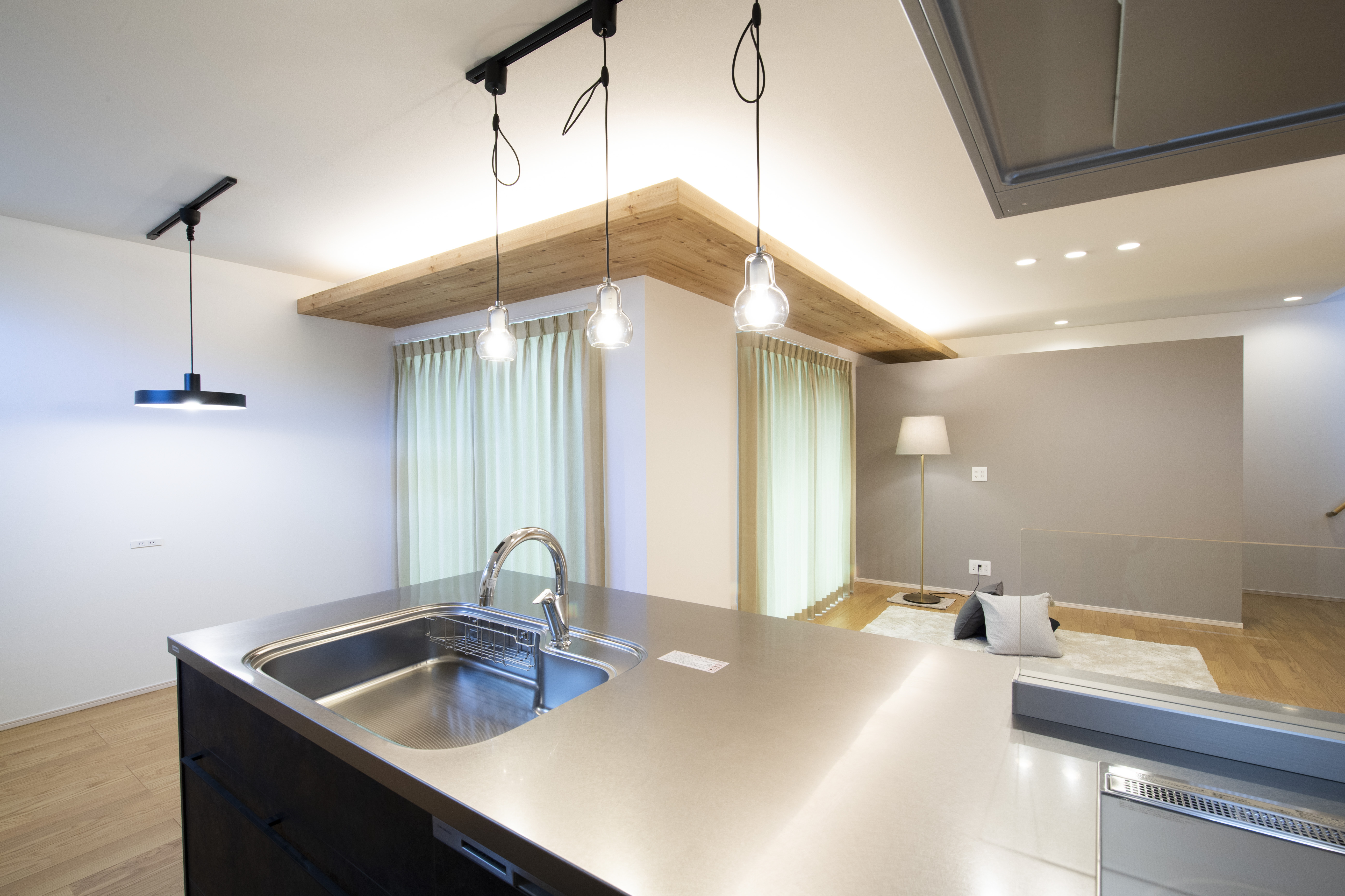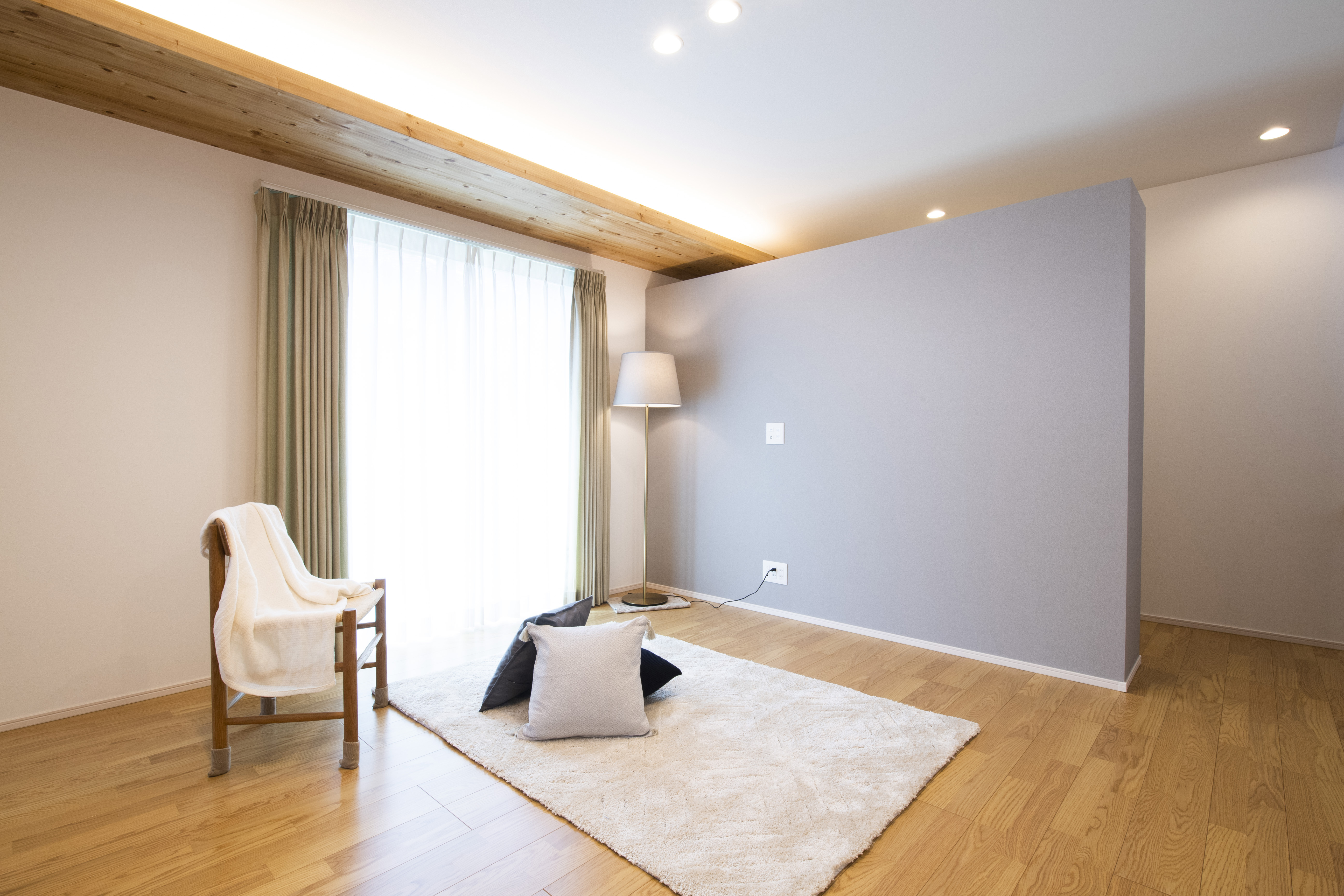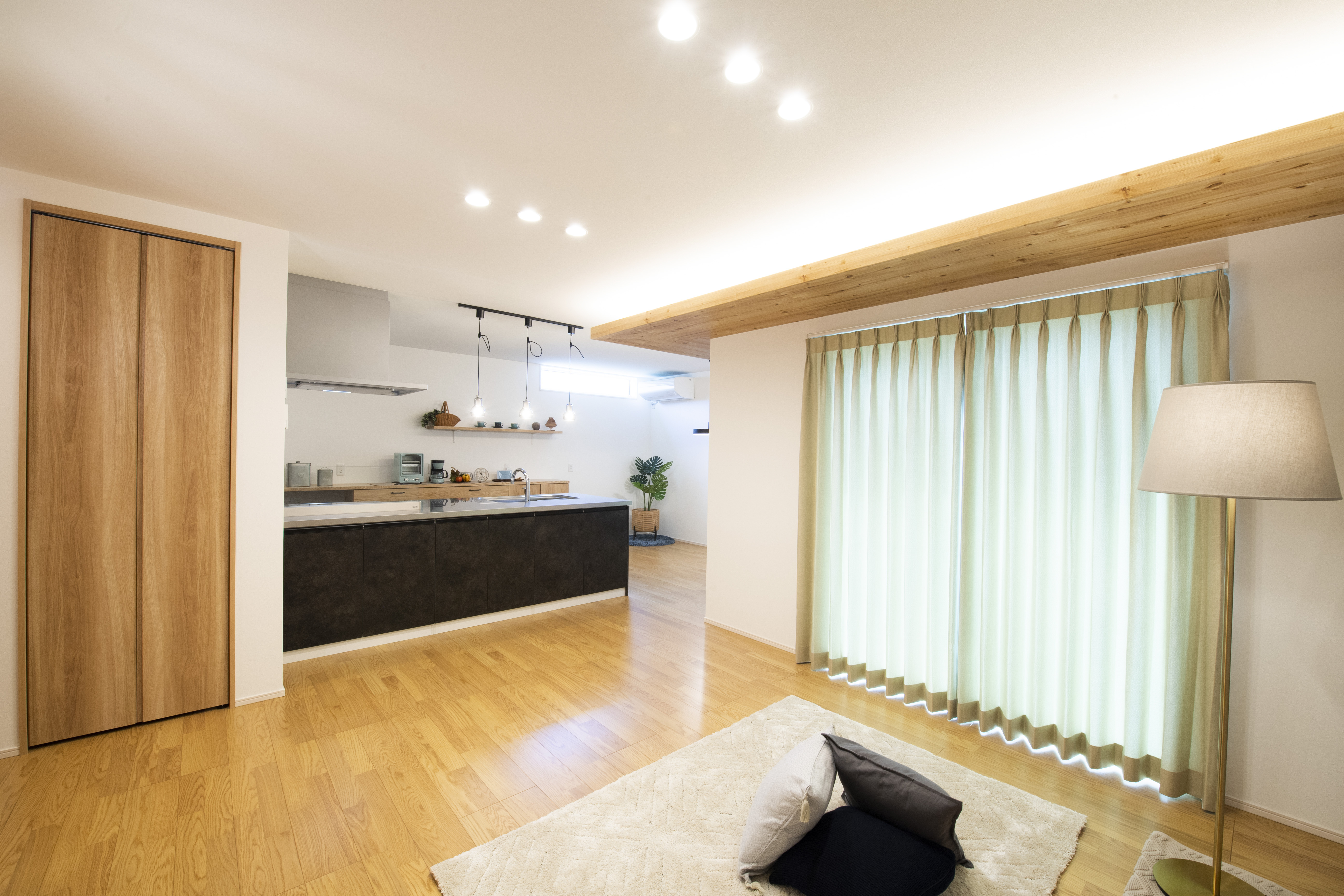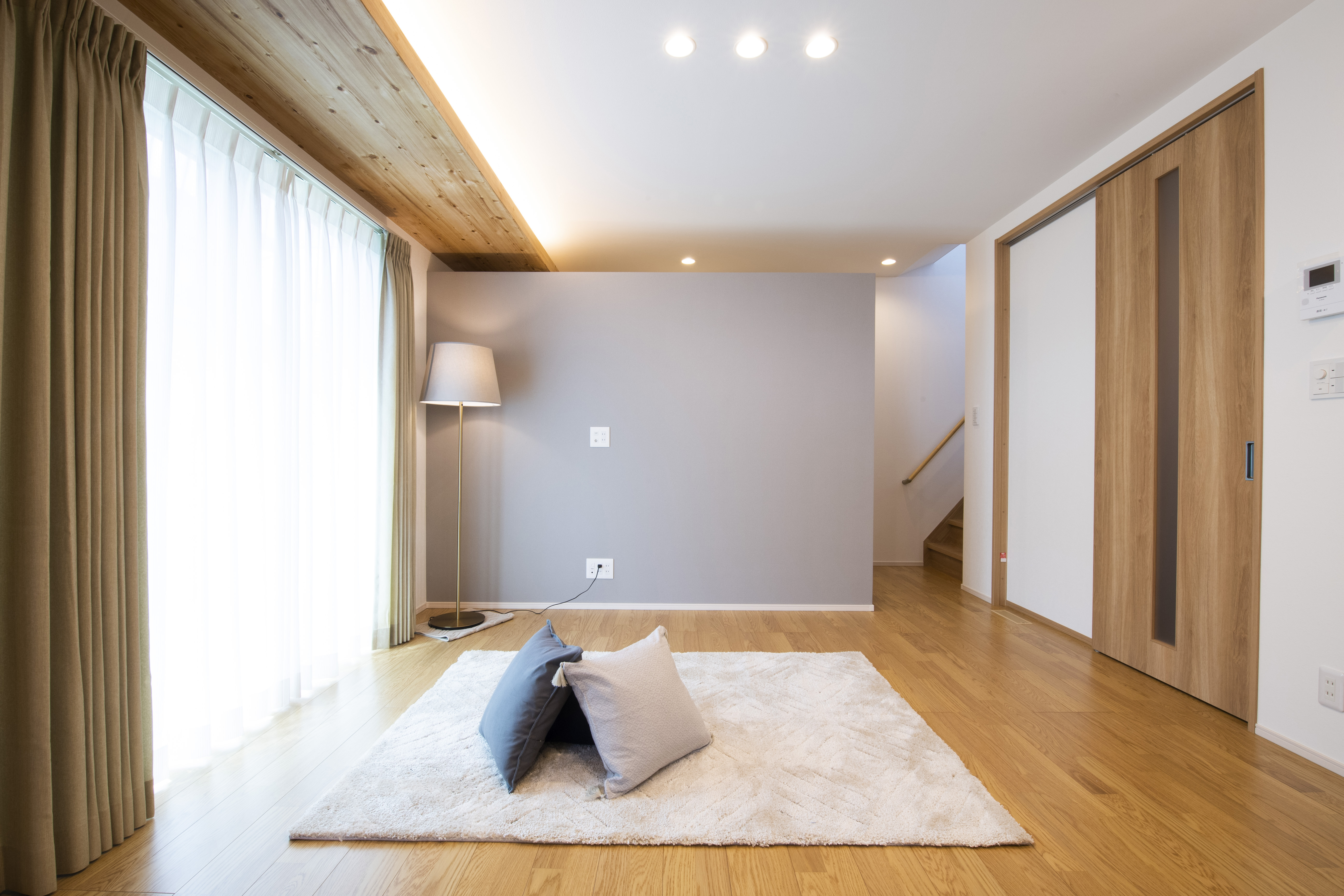 施工内容:新築(田の字型窓・下がり天井&間接照明・造作家具・書斎スペース)