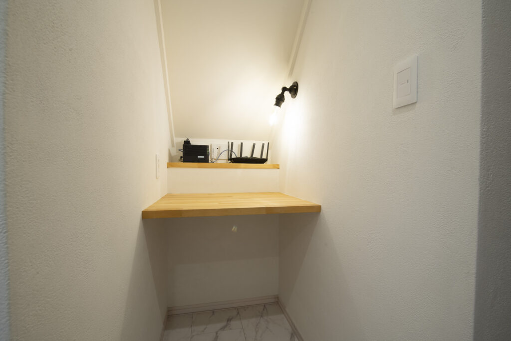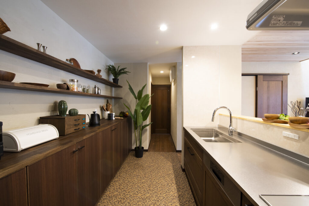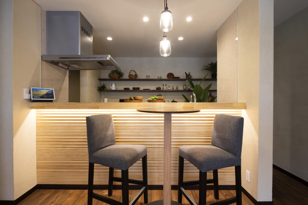 自然素材ならではの「呼吸する壁」が、カフェスタイルの空間に温かみと上質感をプラスしています