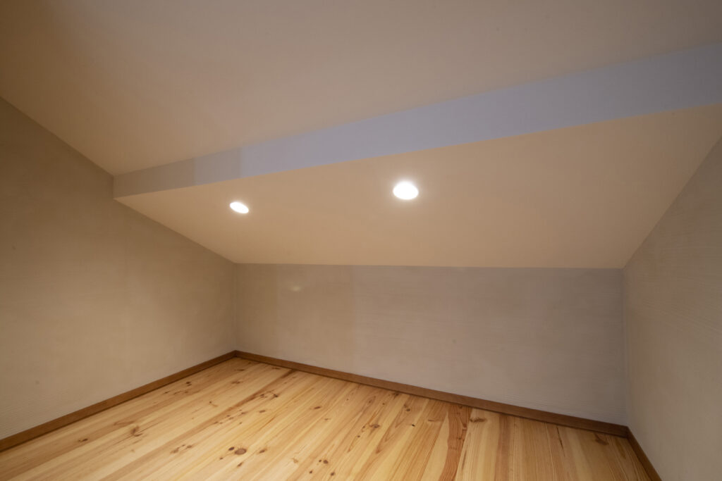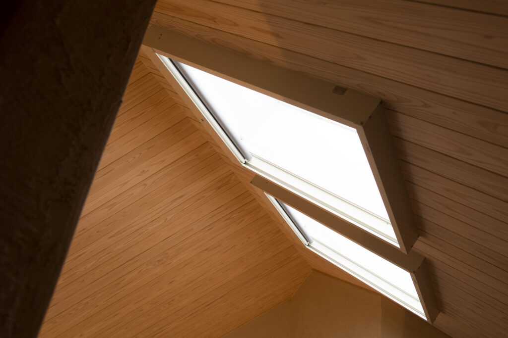 吹き抜け:天窓から差し込むやさしい自然光が、吹き抜けを通じて空間全体をやわらかく包み込みます。
