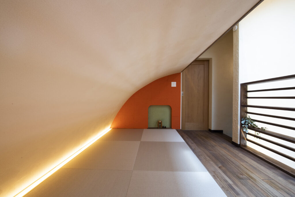 ヌック:天井へと続くゆるやかなカーブが印象的な、2階のこもり感ある秘密基地のようなスペース。読書や趣味など、自分だけの時間をゆっくり楽しめる特別な場所です。
