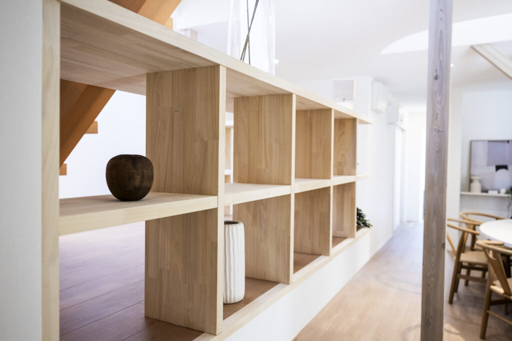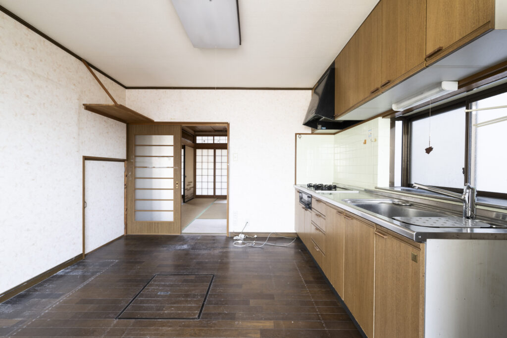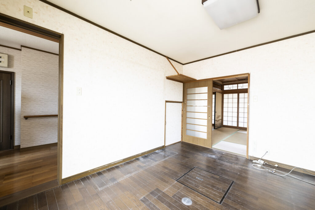 プランニング(間取り):6DKから3LDKへ大胆に間取り変更。壁をできるだけ取り払い、広々としたLDKを実現しました。スキップフロアやダウンフロアで視線レベルに変化を持たせ、家族の気配をいつも感じながら、個人のスペースもしっかり確保できる間取りです。