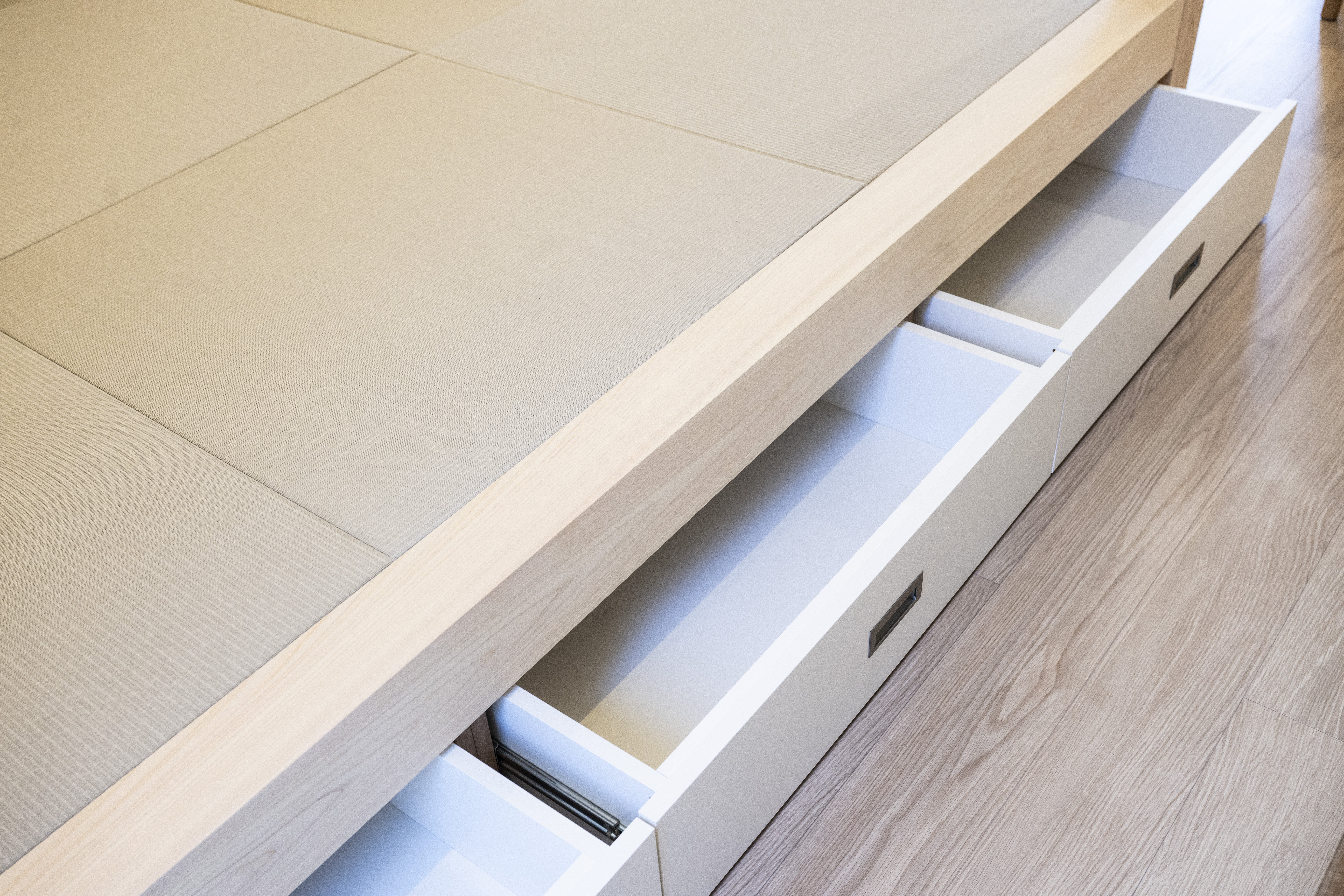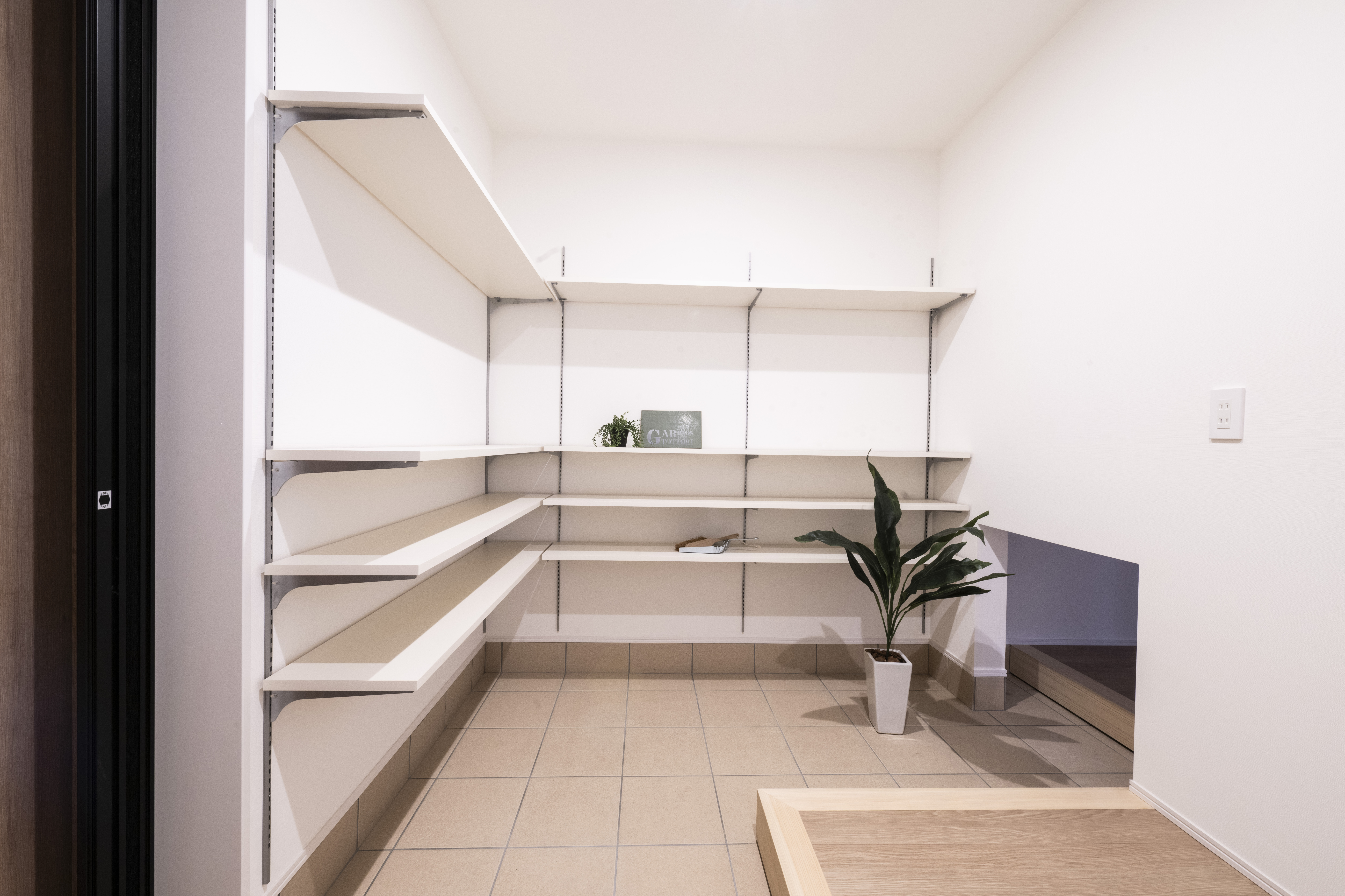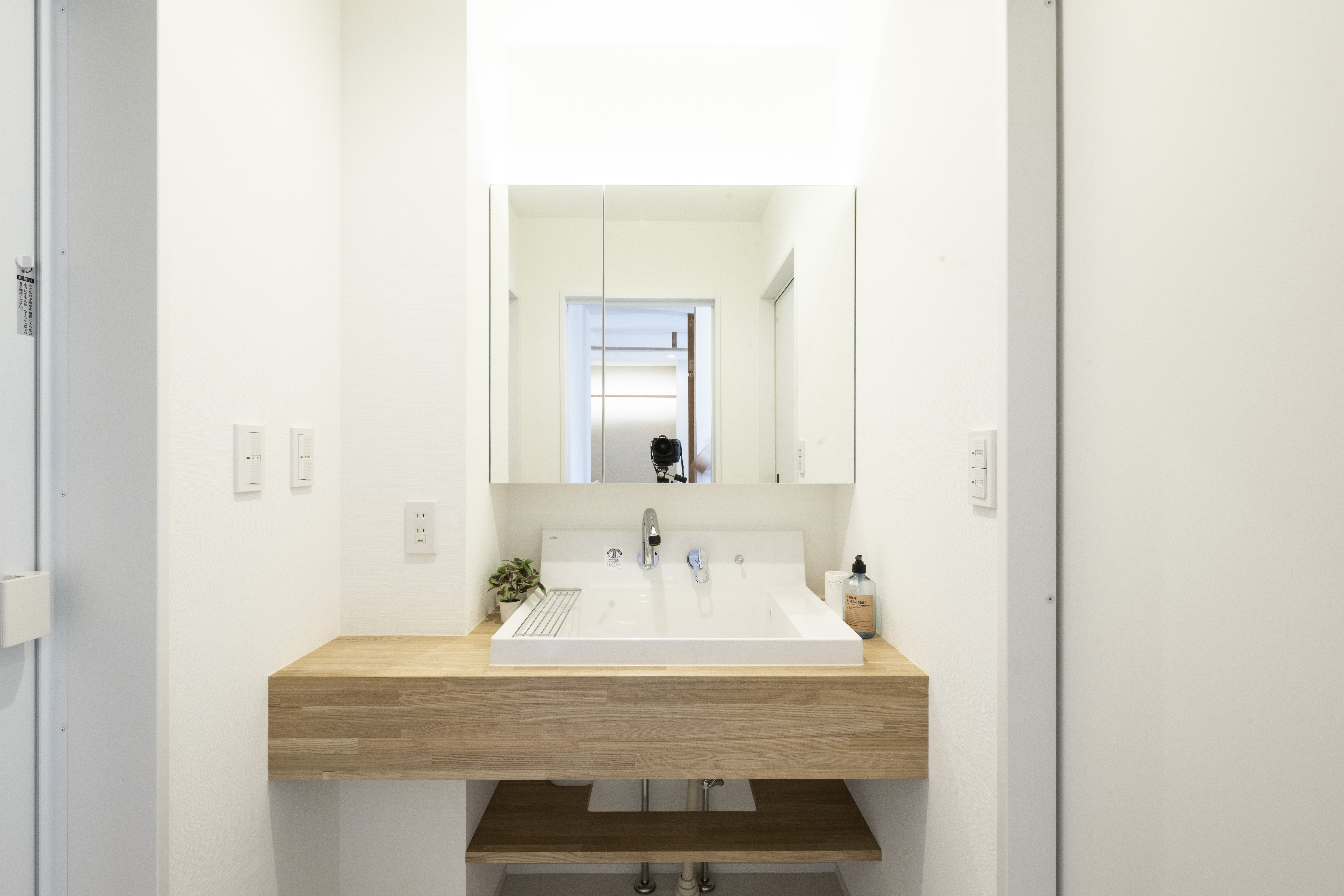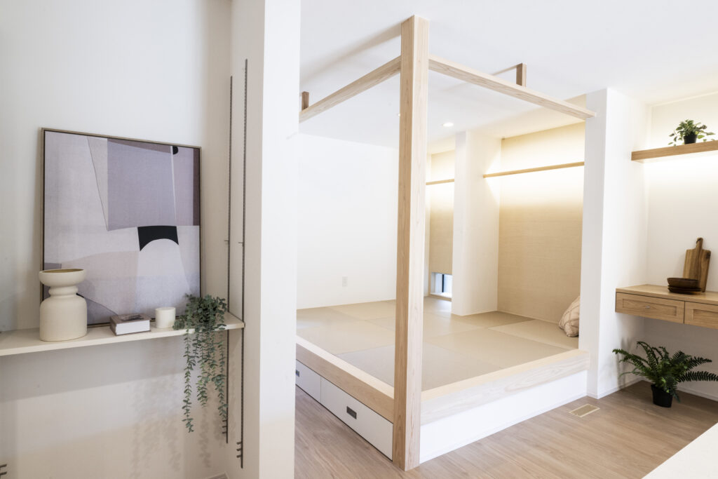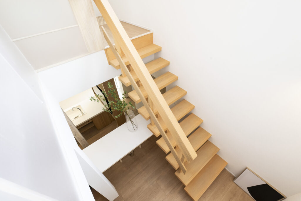 デザイン・造作:白を基調とした明るく広い印象の室内に、造作キッチン・造作階段・小上がりの畳コーナー・多目的スペース・吹き抜けなど、目で見て楽しい造作家具を随所に配置。暮らしに彩りと個性を添えています。
